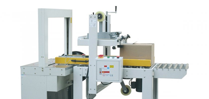 封箱打包一體機是一款集封箱、打包為一體的自動化設備。該封箱打包一體機采用將封箱機皮帶加長的原理,用封箱機的驅動皮帶將物品輸送到打包機的臺面上,整套設備由同一PLC控制。即解決了客戶封箱打包整體作業(yè)的需求,同時大大為客戶節(jié)省了生產成本,是一款經濟實用的自動化包裝設備。