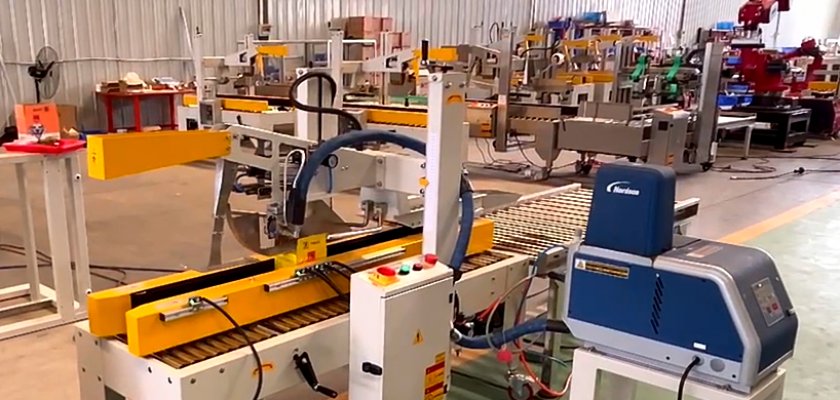 熱熔膠折蓋封箱機(jī)是一款既高效又環(huán)保的自動(dòng)化包裝設(shè)備,該機(jī)可以選擇只熱熔膠封箱,也可選擇熱熔膠與膠帶同時(shí)封箱,效果更佳。艾訊熱熔膠封箱機(jī)配置美國(guó)諾信膠機(jī),性能穩(wěn)定,噴膠效果好,售后有保障。廣泛用于食品、藥品、化工、電商等領(lǐng)域。
